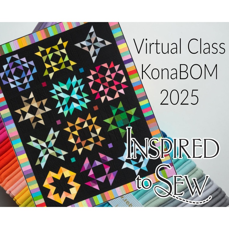 Let's dig into your stash of Kona fabrics and pre-cuts to achieve this amazing 12-block project. Learning from Inspired to Sew includes many bonus lessons. Enjoy the month-by-month lessons for creating the Kona BOM patterns. Lessons include both specialty