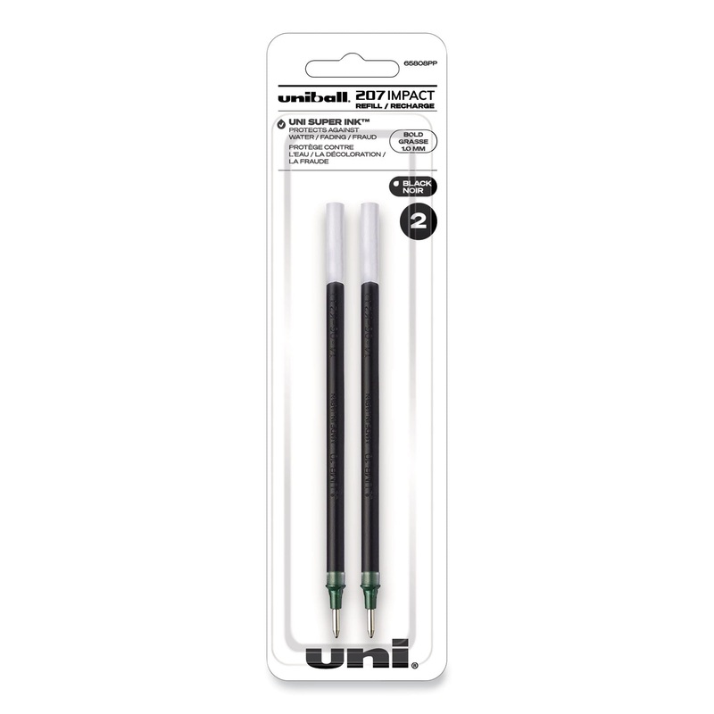 Make an impact and maintain it with 207 Impact Gel Stick Pen Refills. They’re designed specifically for the sophisticated and stylish 207 Impact Gel Stick Pen. Each refill features even-flowing, pigment-based gel ink to deliver the same outstanding ink laydown and luxurious writing experience that you’ve come to expect. Whether you’re signing important documentation, developing records for an archive or simply performing everyday writing tasks, you can also trust its quick-drying uni Super Ink technology to entrench your marks deep into the paper to prevent document alteration, water damage and fading. Its ultra-durable stainless-steel tip provides excellent bend and break resistance, while its smooth-glide point helps you produce the pronounced lines and lettering that make 207 Impact Gel Pens a professional’s first choice. Refill Format: Standard Gel; Refill For Series: uniball 207 Impact Gel Stick Pens; Refill Ink Color: Black; Color Family: Black.