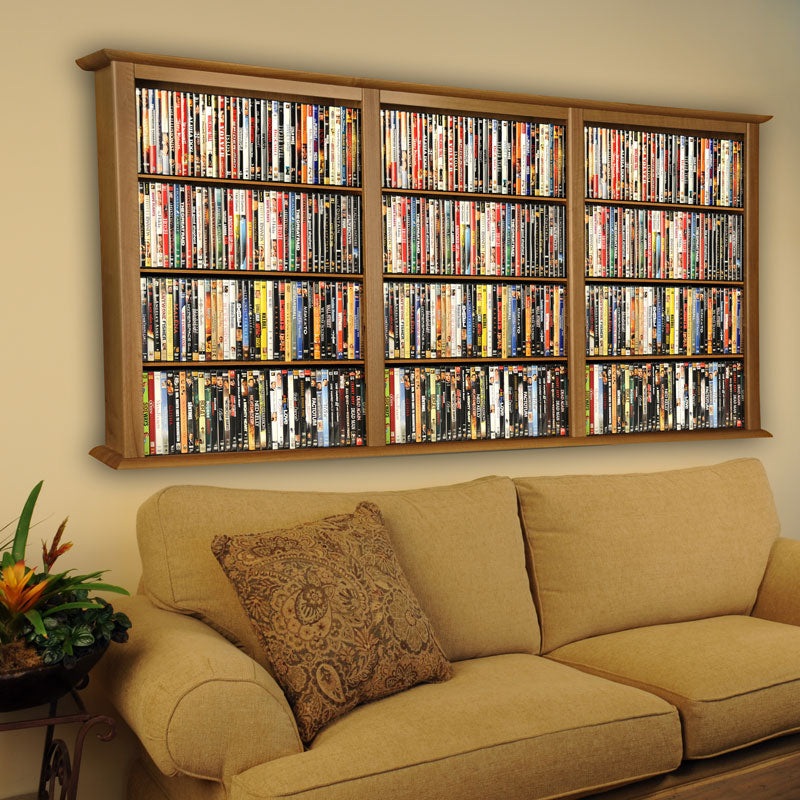 We challenge you to find any line of media cabinets that can store the same capacity for the price! Constructed from durable, stain-resistent, MDF laminate, these Media Shelves neatly store CD’s, DVD’s, Blu-Ray disks, and VHS tapes, and mount to any wall quickly and easily (hardware included) to make effective use of idle wall space. This 36″h, 3-wide unit includes 15, 23″w adjustable shelves, plus the three stationary bottom shelves for exclusively storing CD’s, or remove a shelf or two to store DVD’s, Blu-Ray’s, and VHS tapes. Refer to the chart for capacities of each model and choose the width that’s right for your needs. Assembly required. Available in Oak, Cherry, Walnut, Black, or White.