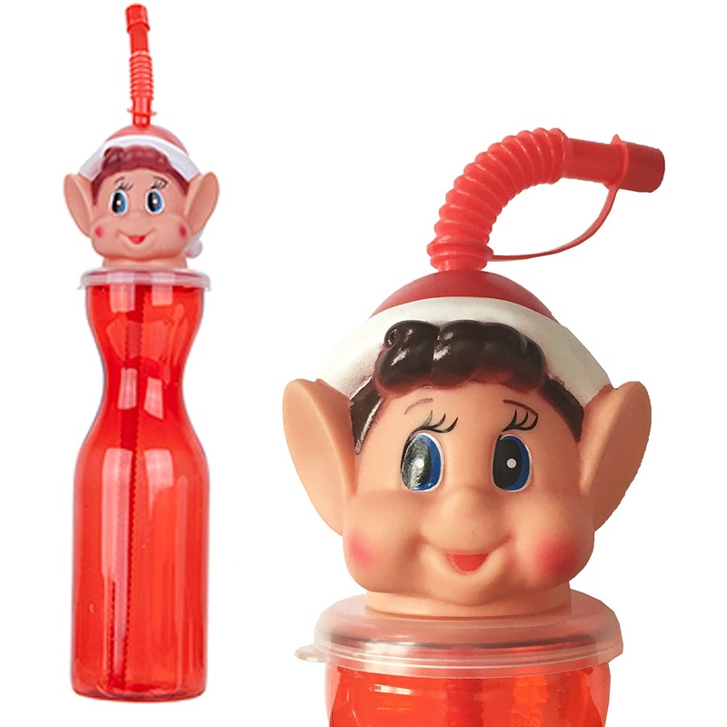 Naughty Elf Red Plastic Bottle: Add a playful touch to hydration with this Naughty Elf red plastic bottle. Perfect Gift This Christmas: Ideal for gifting during the festive season, bringing joy and fun to recipients of all ages. Child Friendly Flexible Str