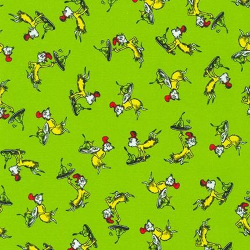 From the world of Dr. Seuss this collection includes some of the most recognized characters including: One Fish, Two Fish Horton Hears a Who Cat in the Hat Oh the Places You’ll Go Green Eggs and Ham Entire collection is also available in yardage to coordinate