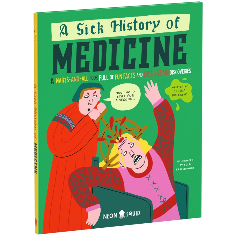 This revolting history of medicine through the ages by Jelena Poleksic is full of blood, guts, and gore! If you dont like going to the doctor, spare a thought for your ancestors.Got a headache?We can drill into your skull!Need to buy medicine?Can we recomm
