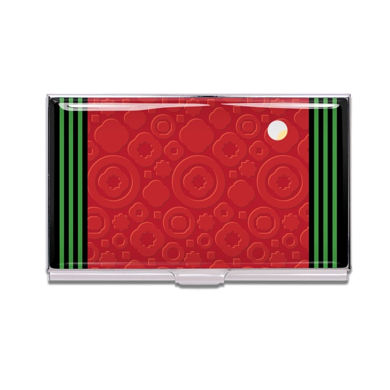 ACME Studio card cases have mirror chrome metal finish inside and out with a unique epoxy image applied to the lid. ACME's logo is stamped on the back. Card cases hold 12-14 business cards, or 2-3 credit cards. 'China Market' Business Card Case is a design