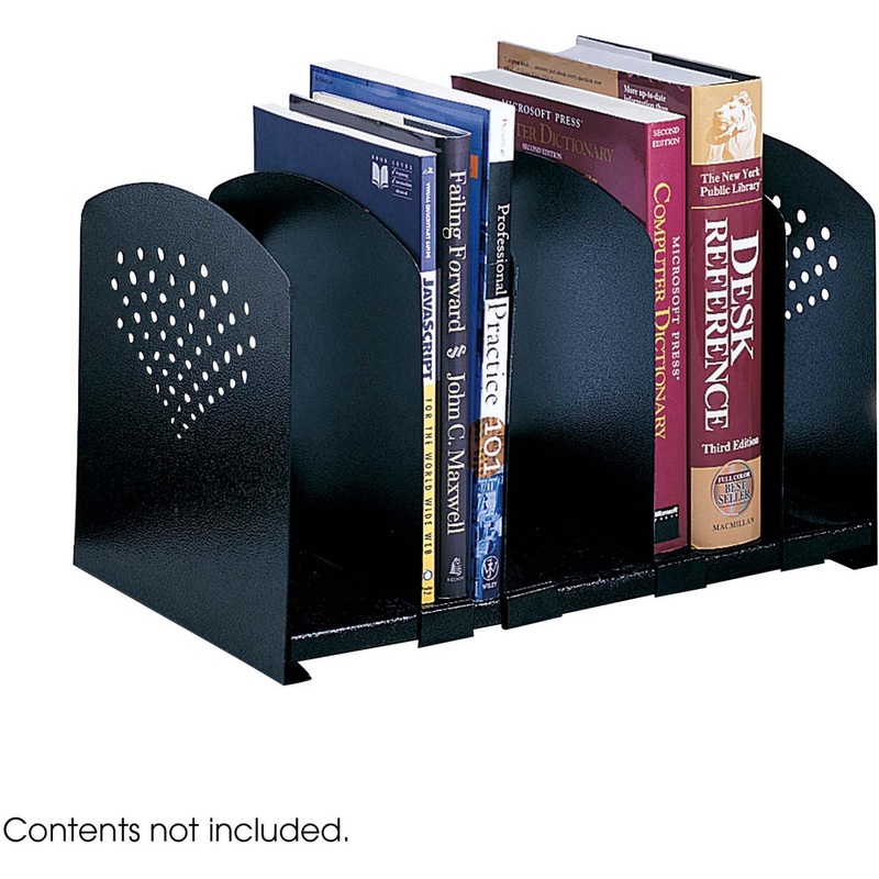 With the Safco 5 Section Adjustable Book Rack, you can hold all sizes of literature in a contemporary, attractive design. Easily adjust the dividers for your individual use, or remove them altogether for larger volumes. Sturdy and useful, the book rack is finished in black to blend with all environments.