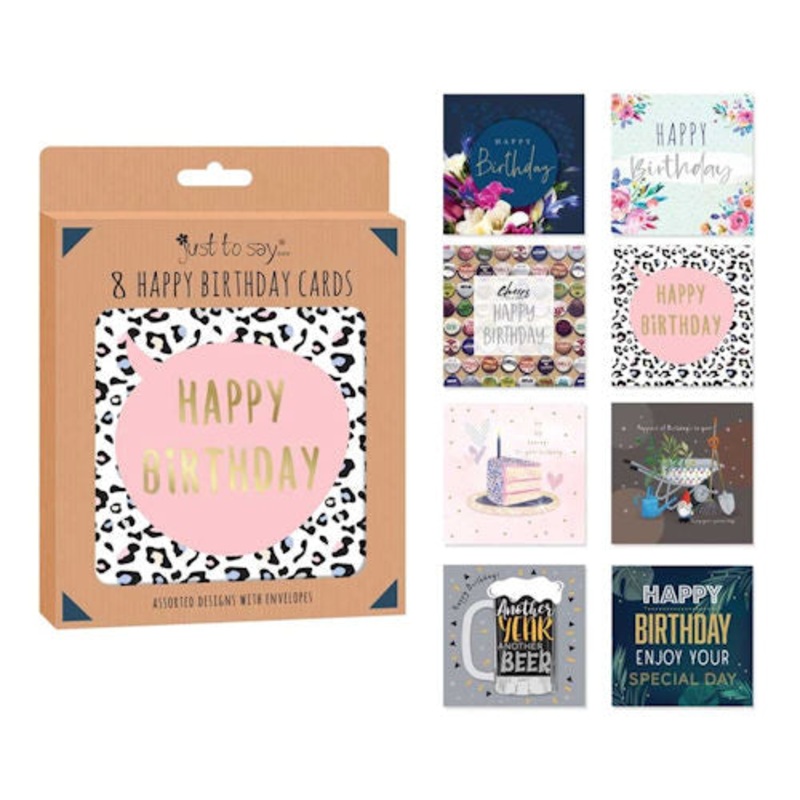 Convenient Pack: Contains 8 birthday cards with envelopes, perfect for those last-minute birthday card needs. Age-Neutral Design: Includes 8 gorgeous cards suitable for any age, making it versatile for both men and women. Approximately 14cm x 14cm: Each ca