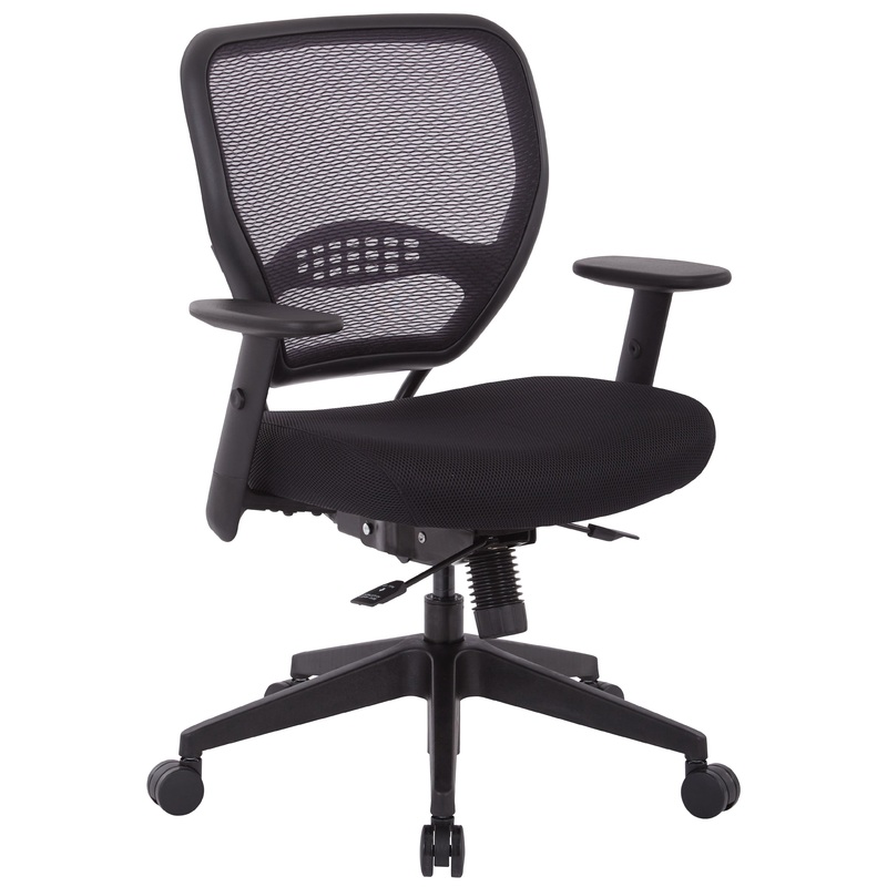 Product FeaturesBreathable Air Grid back with built-in lumbar supportPneumatic seat height adjustment2-to-1 Synchro tilt with three position lock with seat sliderHeight adjustable angled arms with soft PU padsHeavy duty angled nylon base with oversized dua