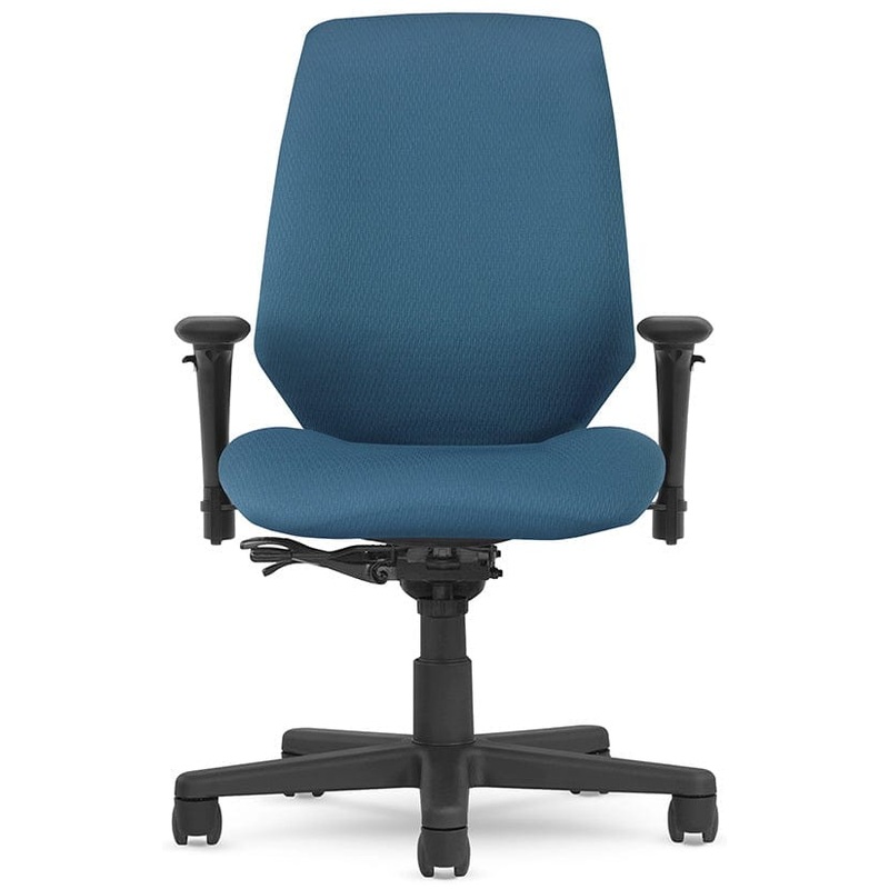 Features include a 350 lb. weight capacity, multi-density foam backrest that conforms to your body, reinforced ballistic nylon back that helps prevent fabric rips or tears, contoured seat available in your choice of fabric or vinyl upholstery, pneumatic seat height adjustment, 360-degree swivel, tilt with infinite tilt lock, tilt tension control, forward seat angle adjustment, back height adjustment, back angle adjustment, fixed elastomeric straps that add support to the lumbar area, adjustable height T-shape armrests and a heavy duty five star nylon base with dual wheel carpet casters. The Chiroform 24 hour heavy duty task chair meets or exceeds ANSI/BIFMA standards.