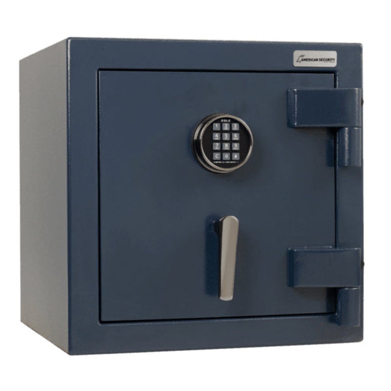 Along with the blue textured finish, the AMSEC Fire and Burglary Protection Safes have external hinges that provide complete access to the interior. There is an “L” handle on the door. These features compliment any trophy room or den, providing a handsome look.