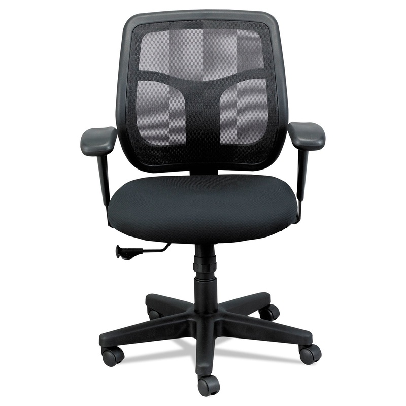 The Apollo is a perennial favorite, combining value, comfort, adjustability and quality, and featuring a breathable, color coordinated mesh back that matches the comfortably contoured and padded waterfall seat. Tilt tension control. 2.8″ ratchet back height adjustment. Recommended Application Area(s): Conference & Meeting; General Office & Task; Seat Color: Black; Back Color: Black; Color Family: Black.