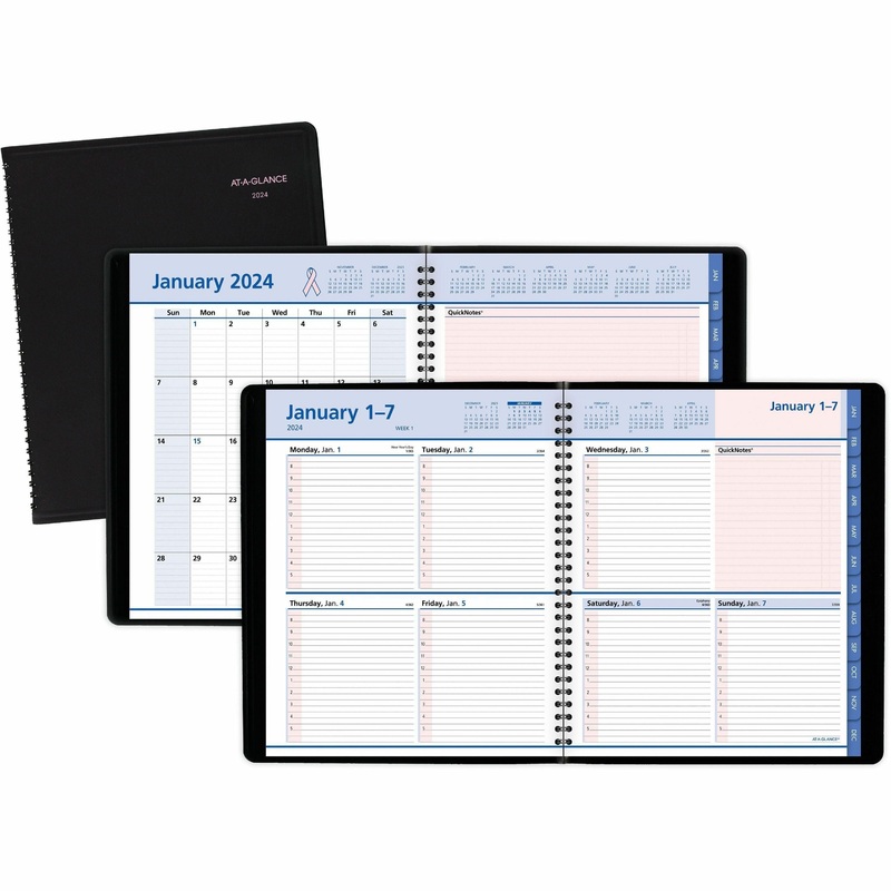 Support the fight against breast cancer and stay organized. Features a pink highlighted section for notes and to-do?s; storage pocket. Weekly: One week per two-page spread with QuickNotes? area; past, current and three future months reference. Monthly: Ste