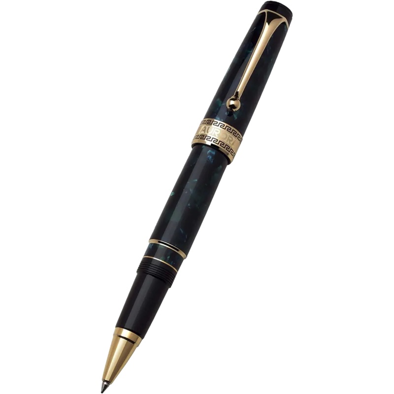 The cap and barrel in rollerball versions are made of marbled Auroloide, an antique material, yet refined and prestigious accentuated by gold-plated trims.