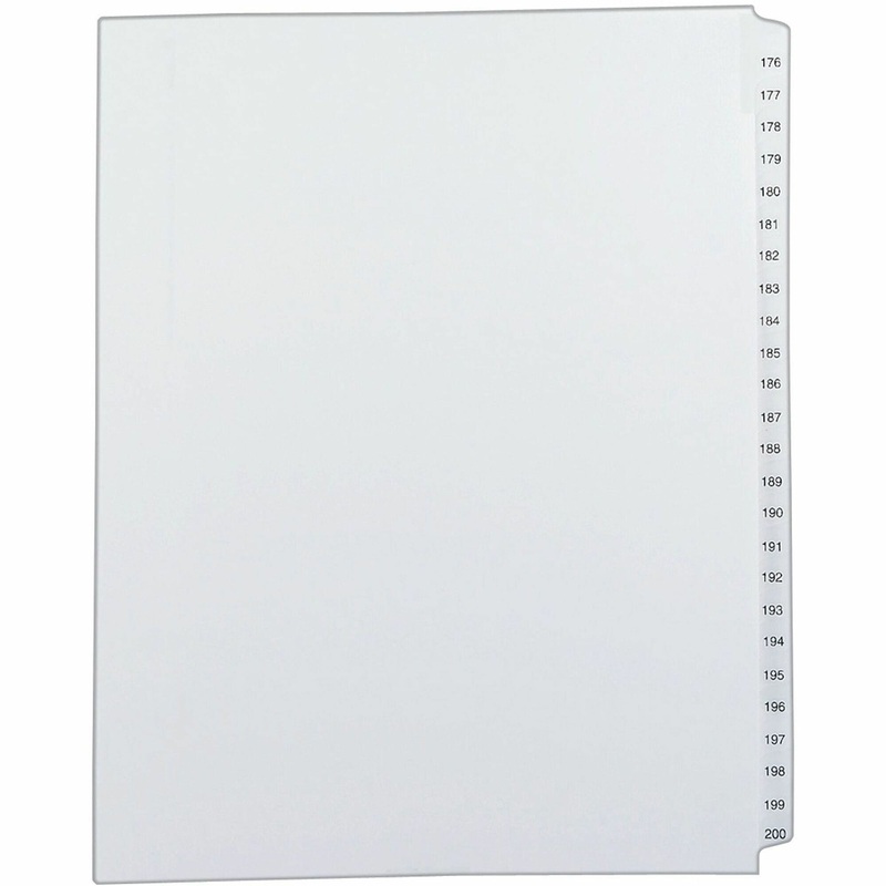 Dividers are ideal for index briefs, legal exhibits, mortgage documentation files and more. White paper stock features clear RipProof reinforced side tabs that are printed on both sides. Tabs are printed with Allstate Style (Helvetica Regular type). Binding edge is unpunched so indexes can fit any binding system.