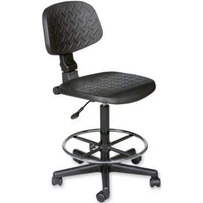 This contemporary drafting chair from BALT features a non upholstered, self-skinned urethane seat and backrest with an industrial style molded pattern.Features360 degree swivelPneumatic seat height adjustmentHeight adjustable foot restAdjustable height/til