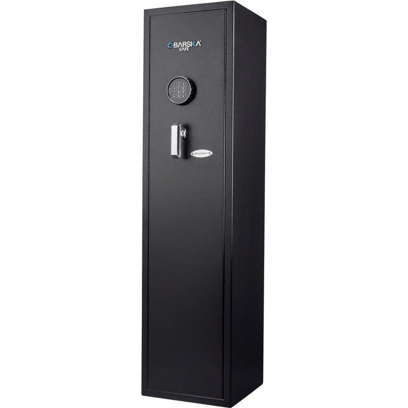 BarskaAX13100 Keypad Rifle SafeThe BarskaAX13100 Keypad Rifle Safe is a slim designed rifle safe that can be used to secure your long guns and handguns when space can be an issue. Its slim enough to fit comfortably within a closet while still giving you ea