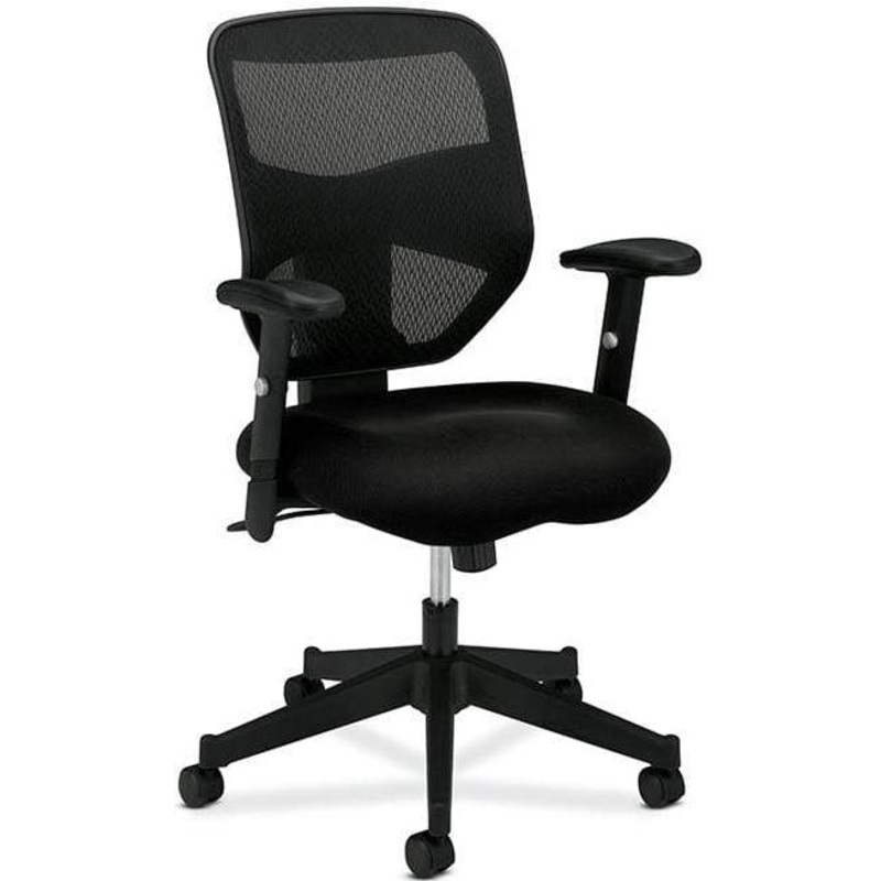 This mesh back computer chair from Basyx features a screen mesh backrest for maximum airflow and helps prevent body heat build up for added comfort.Features: Thick foam padded seat cushionCommercial grade mesh fabric seat upholsteryPneumatic seat-height ad