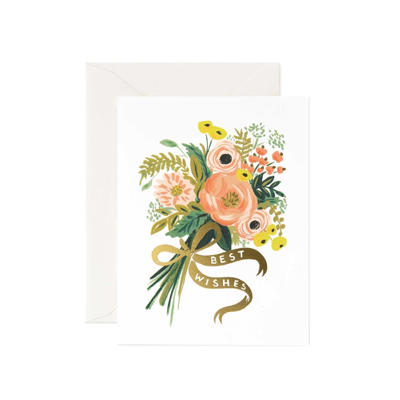 Send a supportive message to a loved one in need with the tender care of the Best Wishes Bouquet Thank You card from Rifle Paper Co. This illustrated card is blank inside and comes with its own high quality envelope. All Rifle Paper Co products are printed on high quality FSC-certified paper stocks.