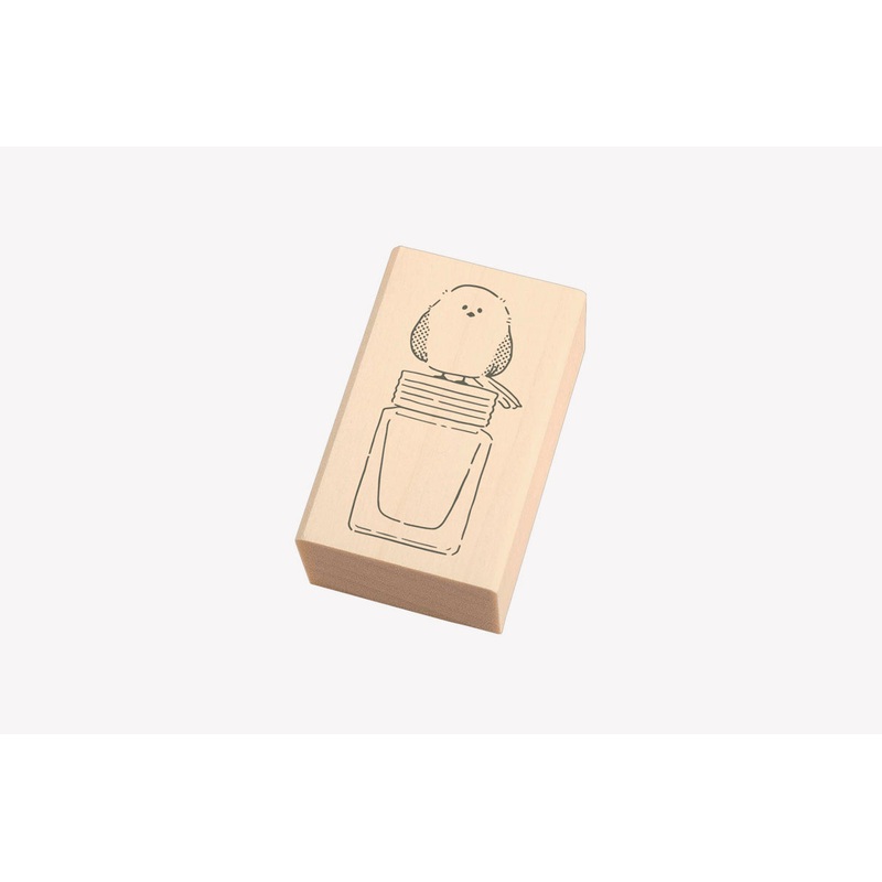 BEVERLY Wood Block Rubber Stamp – Bird With Ink Bottle