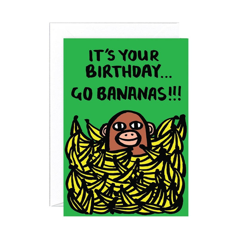 Help a loved one go ape on their special day with the wild Alice Bowsher Birthday Bananas card from WRAP.Alice Bowsher is a London-based illustrator who works primarily with chunky black ink to create joyful characters, large scale murals and illustrated s
