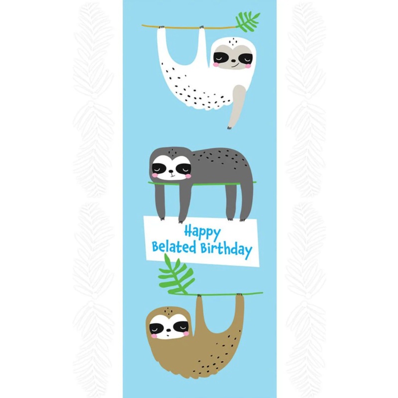 Inside message: Sorry I was a little sloth in wishing you a Happy Birthday!4.5" x 6.75"