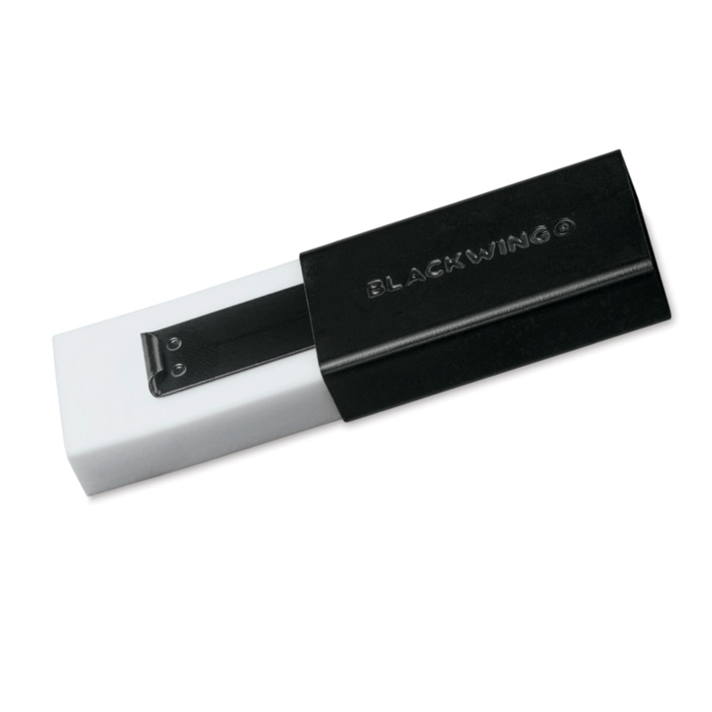 Special soft material that erases cleanly. Holder is made of durable aluminum that features a jumbo-sized version of the Blackwing eraser clip.Blackwing took the iconic design of their eraser clip and adapted it into a sleek handheld form that feels great