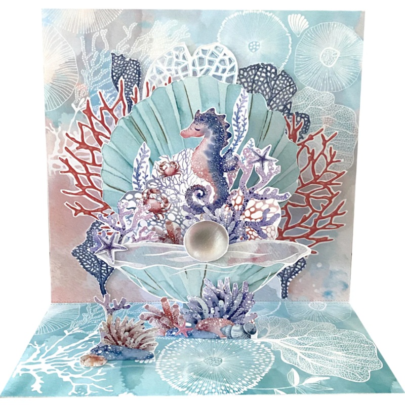 These cards look great both closed and open. When open, the design "pops up" to reveal a beautifully crafted piece of artwork finished with foil, glitter or embossing. The perfect addition to any gift!Blank inside to allow for your own message - opens like