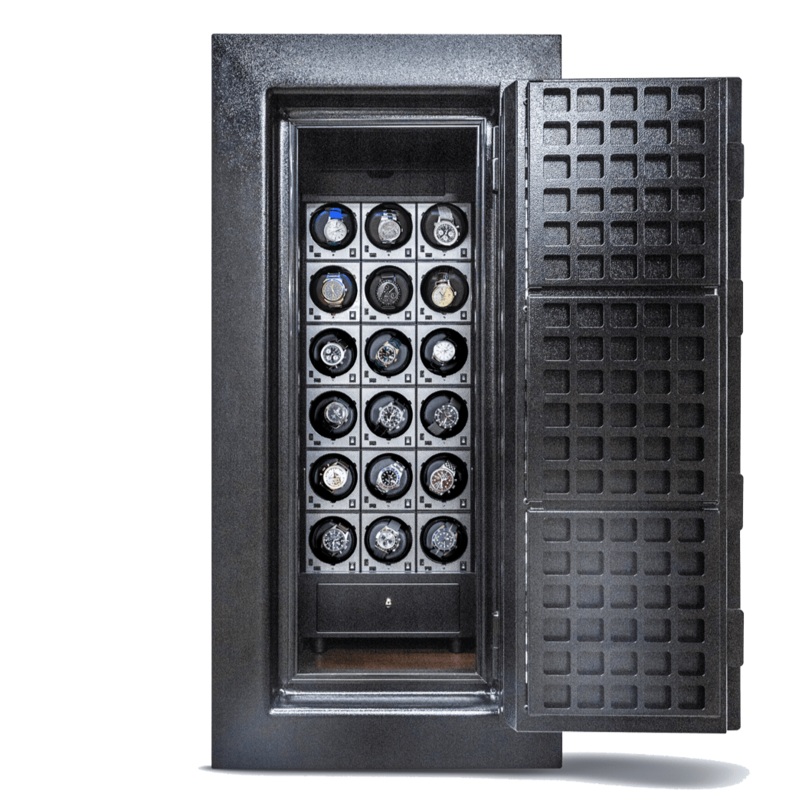 Many customers have been asking for a more secure option with fire protection for their watches. BlumSafe has released the Professional Watch Winder Burglar & Fire Safe for your most valuable watches and other prized possessions, including jewelry and a handgun. This high-quality safe offers unparalleled protection for your collection with its class B-Burglary Safe rating and fireproofing options.