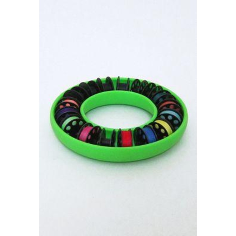 The same flexible rubbery plastic unit that your customers have come to know and love for their standard bobbins is now available in size compatible for M class bobbins. Hold over 20 M class bobbins (1 1/16in plastic or metal bobbins). (Bobbins not included)
