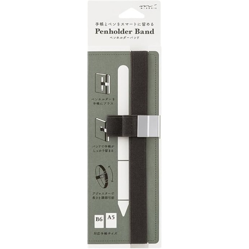 OverviewThe Midori Book Band Pen Holder has two types of slots for you to use depending on whether you want to secure via the pen barrel or with the pen clip. The elastic band can be adjusted accordingly to accommodate books or organizers from B6 to A5 siz