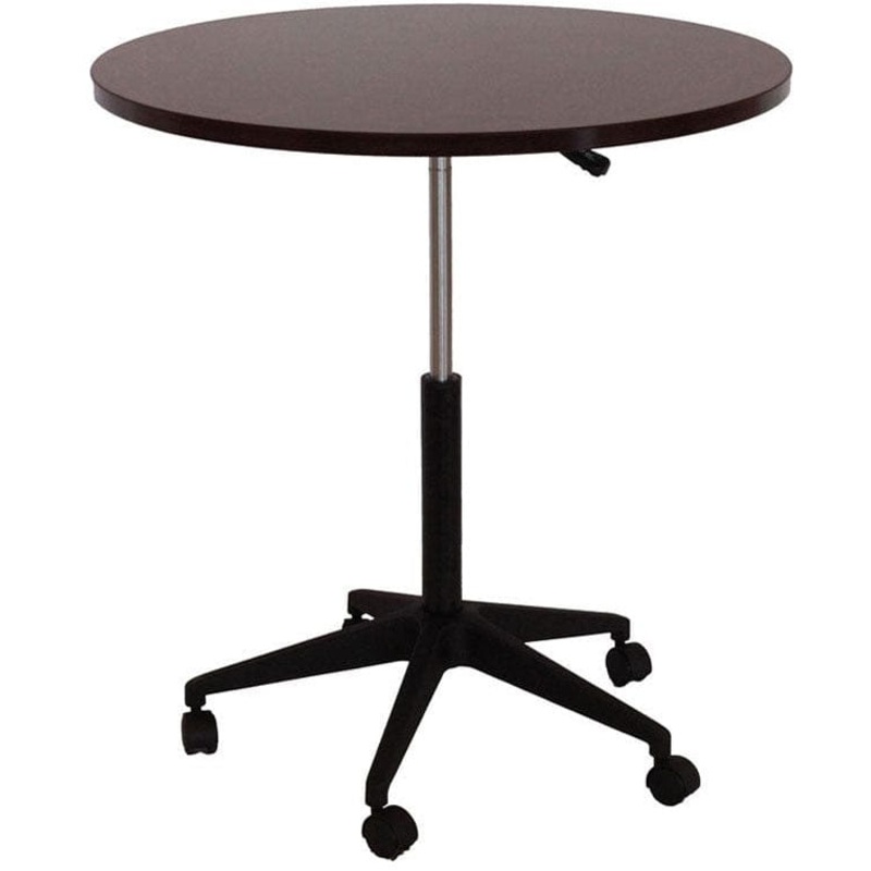 The Boss Office Products N30 is a mobile round table that measures 32 inches and has a rich, sophisticated mahogany or cherry finish. It is made of thermally fused melamine material with 3mm of PVC edge banding, making it highly durable and scratch-resista