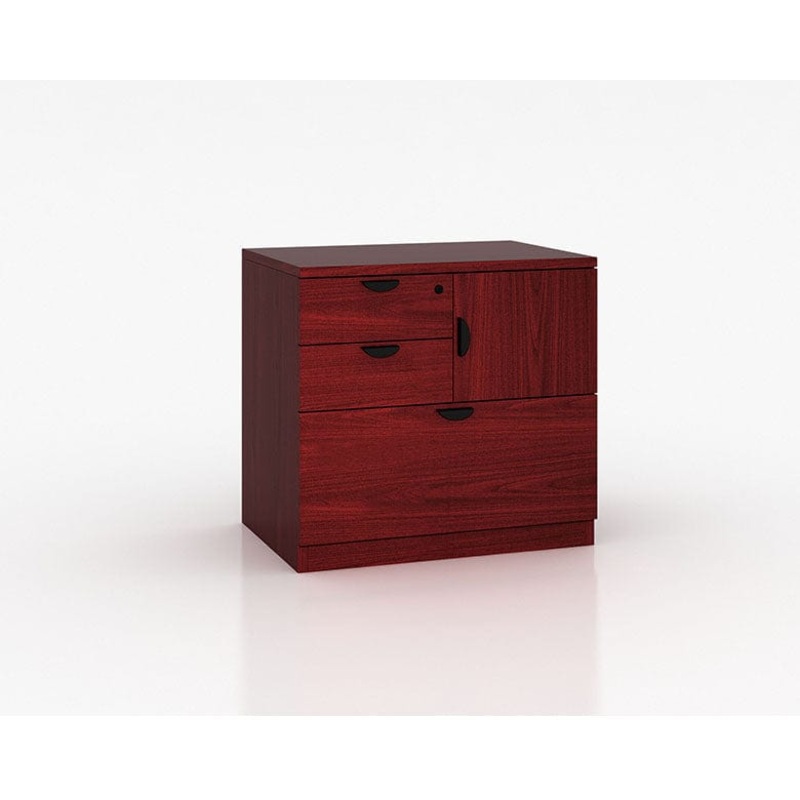 Boss Office Products N114-DW 31 x 22 inch Combo Lateral File in light, neutral Driftwood with Beige tones features a lateral file drawer, two box drawers, and a file drawer that locks along with the lateral drawer. The file drawers accommodate either lette