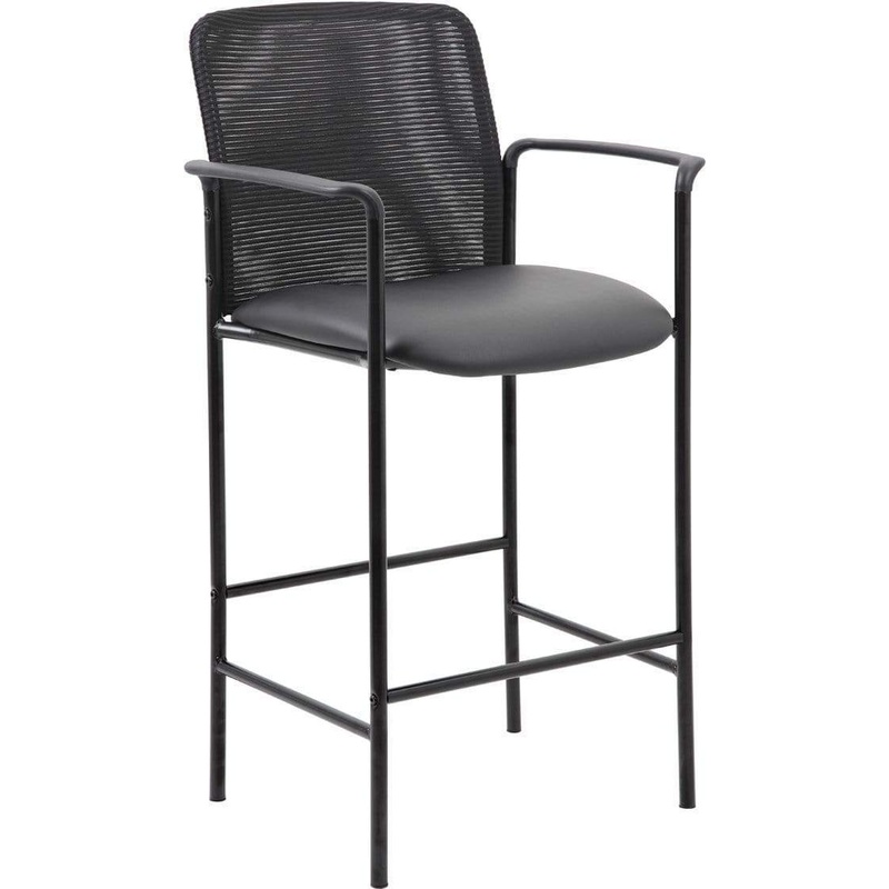 The slender and sleek Contemporary Mesh Back Stool in black is a versatile seat that can be utilized from a drafting stool to guest seating. It is made from sturdy mesh with a Caressoft material on the seat. Caressoft is an upholstery that looks & feels a lot like leather, but is far more durable and can be easily cleaned with a damp cloth. The stool has fixed arms and a 4 leg tubular base made from sturdy black steel which offers a 275 lbs. capacity.