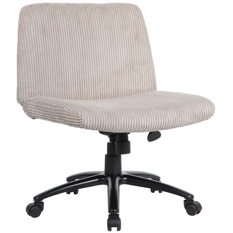 Crafted with a cushioned seat covered in plush Beige Corduroy fabric, the chair promises all-day comfort, providing a soft yet supportive experience. The thoughtfully designed pneumatic gas lift allows for easy and precise height adjustment, ensuring you can find your perfect fit and promoting healthier posture and ergonomics while you work.