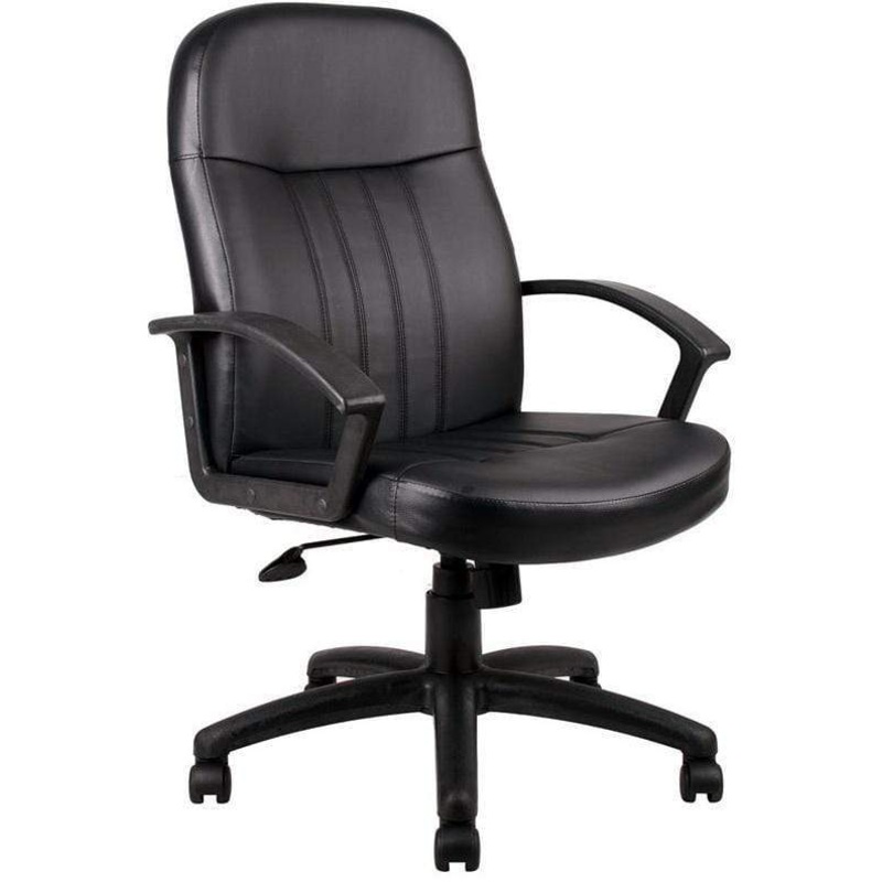 Low cost luxury that looks as good as it feels! The black LeatherPlus blends with any office dcor. Features pneumatic seat height adjustment, passive ergonomic seating for full back, neck, leg, arm and posture support with built-in lumbar cushioning, arche