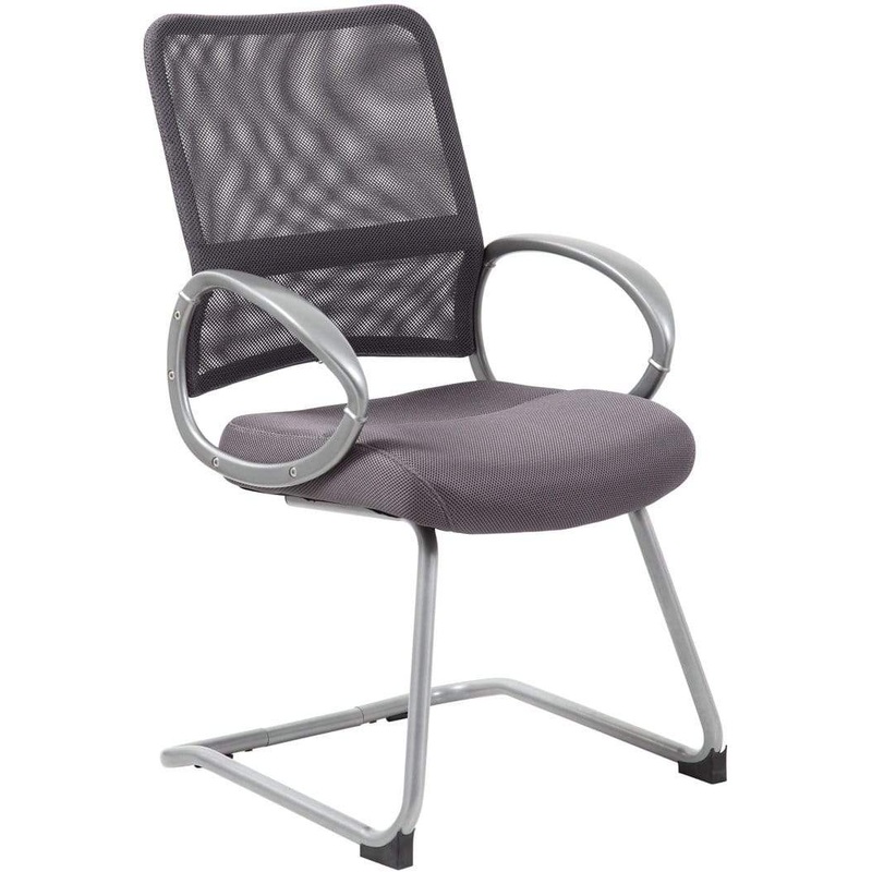 This mesh back guest chair with pewter finish is fun, modern, and has a minimalist design. The guest chair features a loop, fixed arms design, and a breathable mesh back and seat that is not only stylish but comfortable too. The chair itself adds style, as