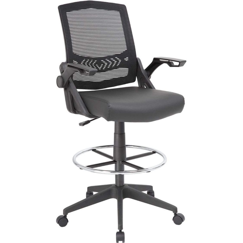 Boss Mesh Drafting Stool with Flip Arms [B16223-BK]
