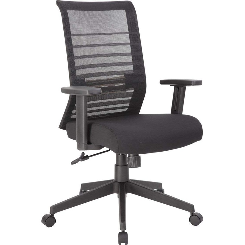 The horizontal mesh back task chair has been designed with comfort and ease in mind. It features a Synchro-Tilt Mechanism that allows the backrest and seat to tilt in unison. The back tilts more than the seat and is also tension adjustable. Additionally, the chair’s arms are adjustable, there is a pneumatic gas lift that allows for easy height adjustment, and it has a weight limit of 275 lbs, making it the perfect chair for almost everyone.