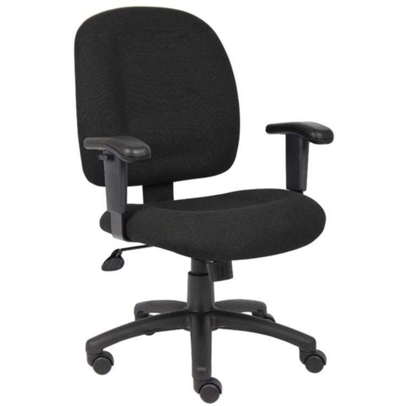 With its smart design, this task chair will relieve pressure on lower backs with its mid-back styling and lumbar support features. Height adjustable, the base is large and provides extra stability. Upholstered in soothing Black, it is a pleasure to sit dow