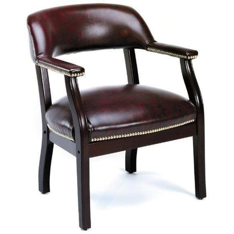 Introducing a beautifully crafted captain's chair from Boss that embodies timeless elegance and sophistication. This chair showcases a classic design adorned with meticulously hand-applied brass nail head trim that encircles the armrests and the bottom of