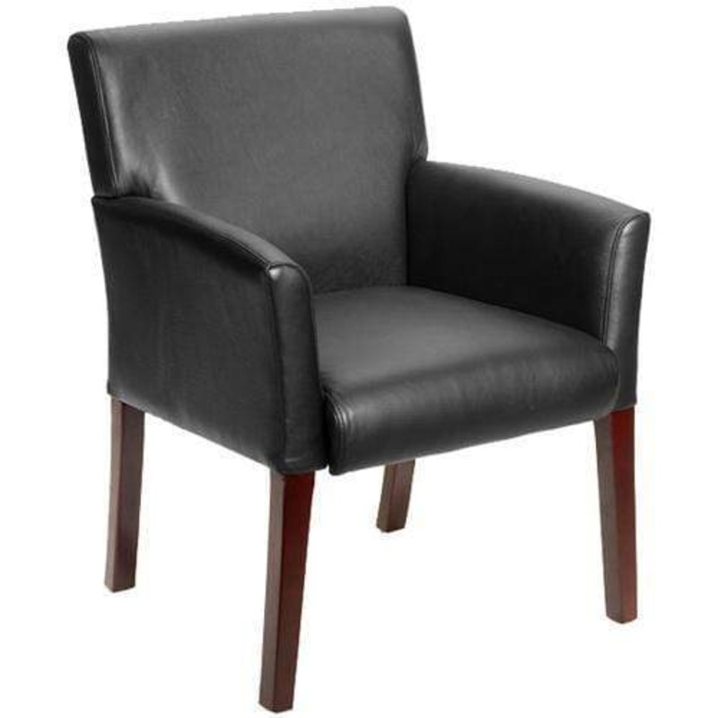 Get the chair that makes a difference; get the Box Arm Guest Chair by Boss. Sleek and elegant, this guest chair offers comfort, style and firmness, all in one setting. Its Mahogany Finish adds more shine to rooms for the ultimate appeal. In addition to cla
