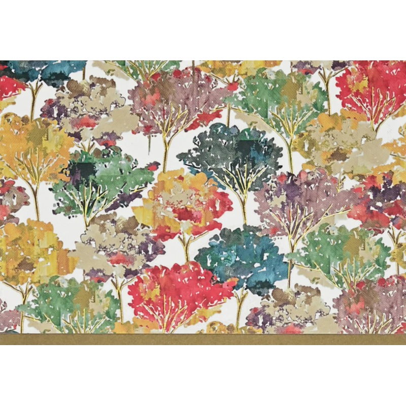 Autumnal hues are the focus of these elegant note cards, with an image of vibrant trees set above a matching border.