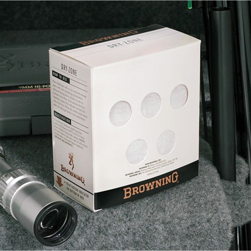 Browning Dry Zone Desiccant Dehumidifier - 154001The Browning 154001 Dry Zone Desiccant Dehumidifier absorbs moisture without using electricity. It is rechargeable in an oven and can be reactivated indefinitely. One 500-gram desiccant box protects up to 37