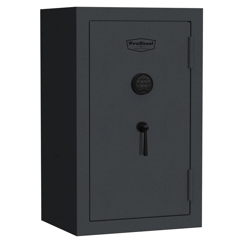 Featuring a Securam UL Listed Electronic Lock installed by Browning, the PS13 Home Fireproof Safe has a sturdy 14-gauge body and reinforced door frame for enhanced security. Its sleek textured charcoal exterior is complemented by a straight drop black chrome handle for effortless access. Inside, three adjustable shelves inside along with two large pockets and four small mesh pockets on the door help organize your belongings.