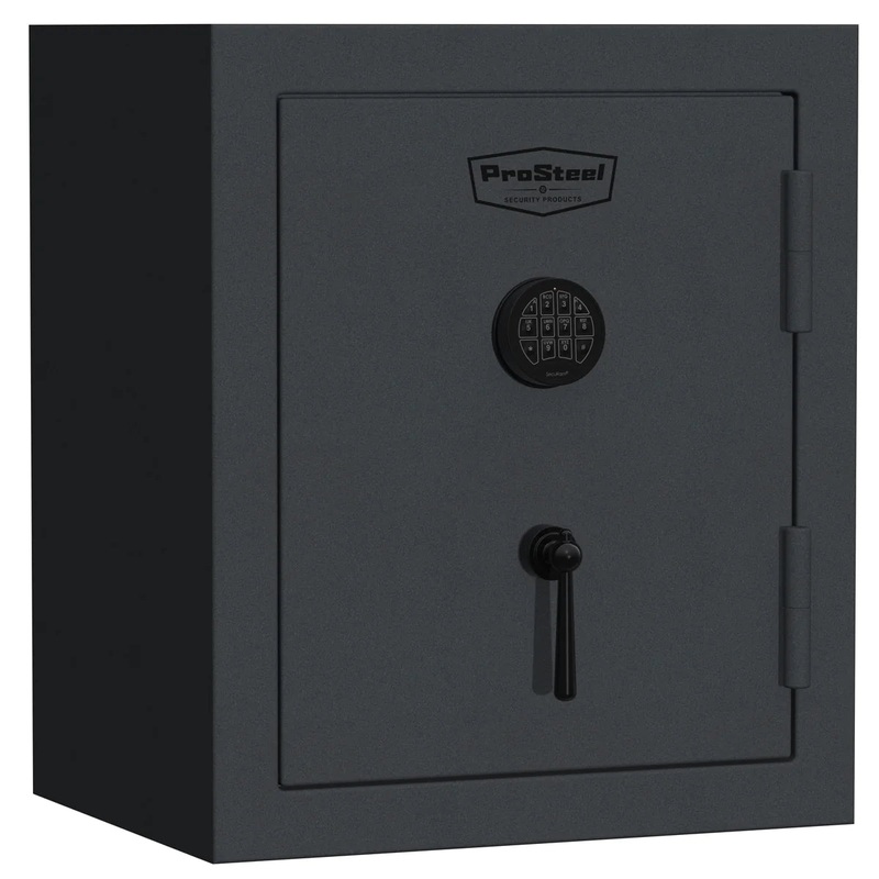 Featuring a Securam UL Listed Electronic Lock installed by Browning, the PS9 Home Fireproof Safe has a sturdy 14-gauge body and reinforced door frame for enhanced security. Its sleek textured charcoal exterior is complemented by a straight drop black chrome handle for effortless access. Inside, two CMS shelves help organize your belongings.