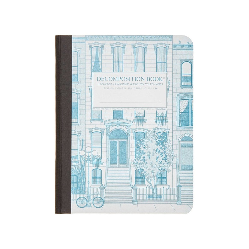 This Decomposition notebook is made from completely recycled materials, with 160 college-ruled pages of unbleached white paper are made from 100% post-consumer waste. The paper is stitched and the notebook is tape-bound, so it opens completely flat for unimpeded writing. The covers are made of a heavy card, and the energy used in the production of the notebooks is an eco-friendly bio-gas. The inside cover features all kinds of witty, useful information and sketches.