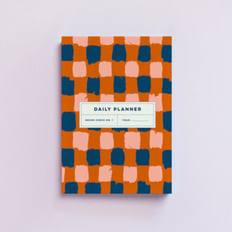Need to get organised? Then you need this daily planner book. It features a burnt orange abstract check print, and has a contrast navy inside cover. Its undated, so you can start it whenever you want (and you dont have to feel guilty if you dont use it for