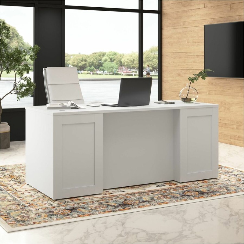 Bush Business Furniture Hampton Heights 72W x 30D Executive Desk – Material: Metal, Plastic, Thermofused Laminate (TFL), Laminate, Engineered Wood – Finish: White, Thermofused Laminate (TFL) – Durable, Scratch Resistant, Stain Resistant, Cable Management,
