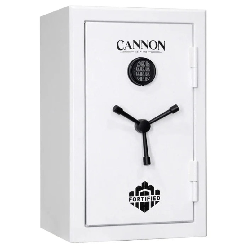 With a sleek Textured White Gloss finish, Trunliner Cool Grey interior, and black three-spoke handle, this safe combines style with security. Pre-drilled bolt-down holes and included hardware make securing the safe easy, while its California DOJ approval ensures it meets strict firearm storage standards. Offering 4.32 cubic feet of storage space in a compact, space-efficient design, this 245-pound safe is ideal for home or office use. Backed by a lifetime warranty, the Cannon FD3220-H6TEB-23-DS guarantees long-term protection and peace of mind.