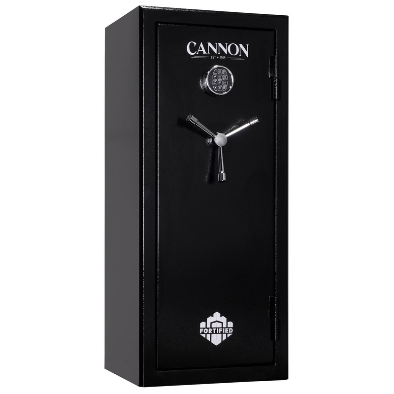 The Cannon FD4720-H1TEC-23DS Fortified Series Executive Large Home Safe is built to deliver security and fire protection for firearms, documents, and valuables. Constructed with 14-gauge solid steel and reinforced with a hardened steel plate and anti-drill hard plate, this safe is designed to withstand tampering and forced entry. Its six 1-inch diameter solid steel locking boltsfour active and two deadboltsprovide heavy-duty door security. The electronic lock with an easy-access keypad ensures quick entry while including a backup key for reliability. Fire-rated for 60 minutes at 1200 F, this safe also features a dual-stage triple fin door seal, offering exceptional protection against smoke and heat damage.