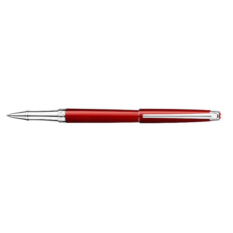 TYPE OF WRITING INSTRUMENTRoller PenLength: 141 mm x Diameter: 10.6 mmWeight: 38gPEN BODYBody and cap covered in translucent red lacquer and a kaleidoscope of cubic guilloche patternsCaran dAche logo and Swiss Made engraved on the ringCLIP, BUTTONRhodium and silver coated clip and push buttonButton carrying the Caran dAche identification (red lacquered hexagon)CARTRIDGES AND REFILLSEquipped with a roller cartridge (Fine)PACKAGINGStandard caseDimensions: 18.4 x 8 x 4 cmWeight: 242 gCartridges, user guide and warranty supplied with the productLEGAL STANDARDSSwiss Made