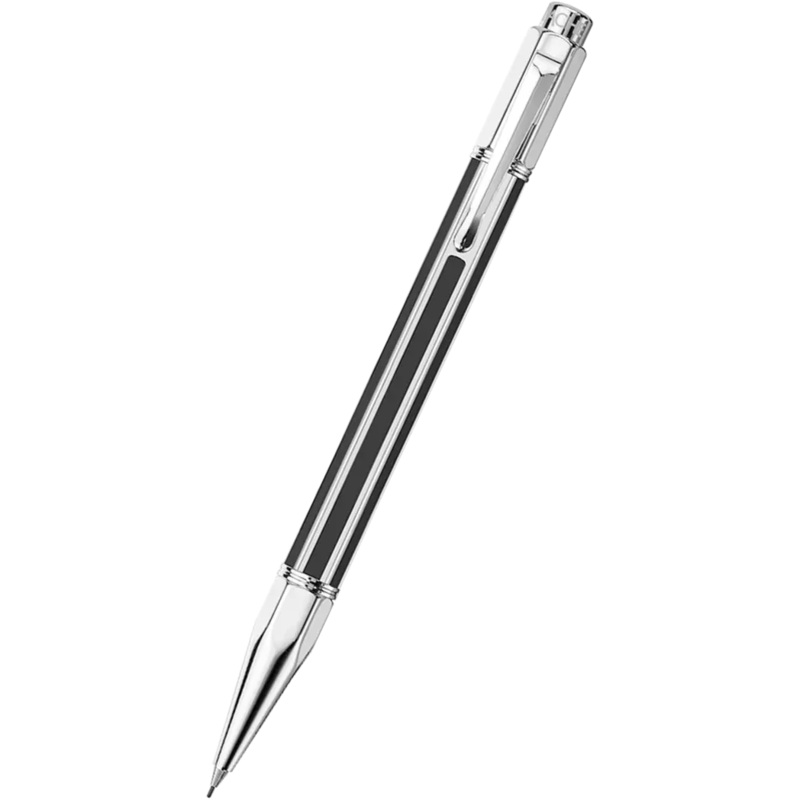 Caran d Ache Varius Chinablack Mechanical PencilBody of thick gauge brass and finished with genuine black Chinese lacquer, trimmed with an articulated clip, using a spring mechanism. Silver-plated, rhodium-coated finishes.Mechanical Pencil has an eraser an